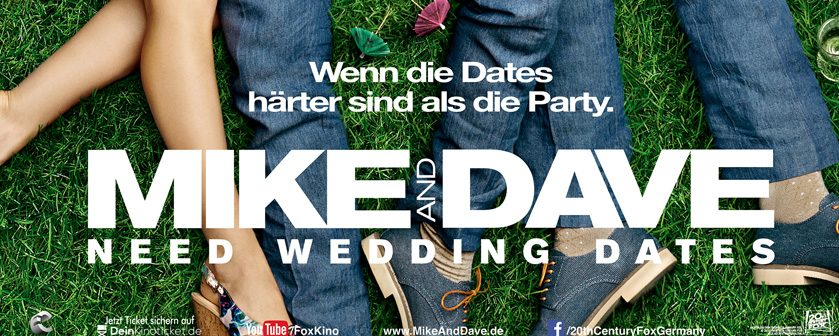 Mike and Dave need Wedding DatesDie feierwütigen Brüder Mike (Adam Devine) und Dave (Zac Efron) schalten eine Online-Anzeige, um das perfekte Date (Anna Kendrick, Aubrey Plaza) für die Hochzeit ihrer Schwester auf Hawaii zu finden.