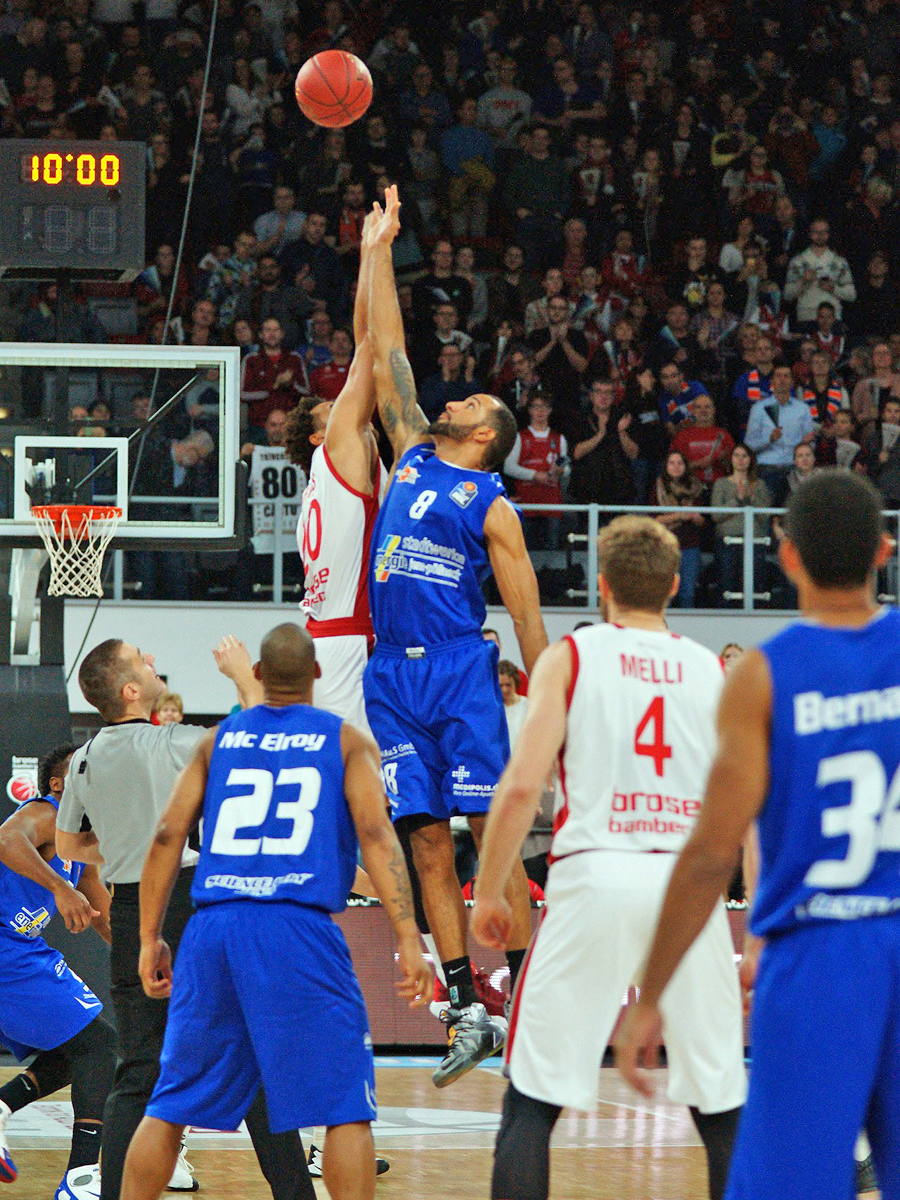 Brose Bamberg, insbesondere Maodo Lô, attackierte immer wieder konsequent den Gästekorb und erarbeitete sich bereits bis zur Pause 14 Freiwürfe (14 Treffer). Auf der anderen Seite hatten die Hausherren dank der exzellenten Arbeit von Nicoló Melli (5 Rebounds) und Daniel Theis (6 Rebounds) die klare Lufthoheit (27:14), was letztendlich zur deutlichen 44:27-Pausenführung führte.