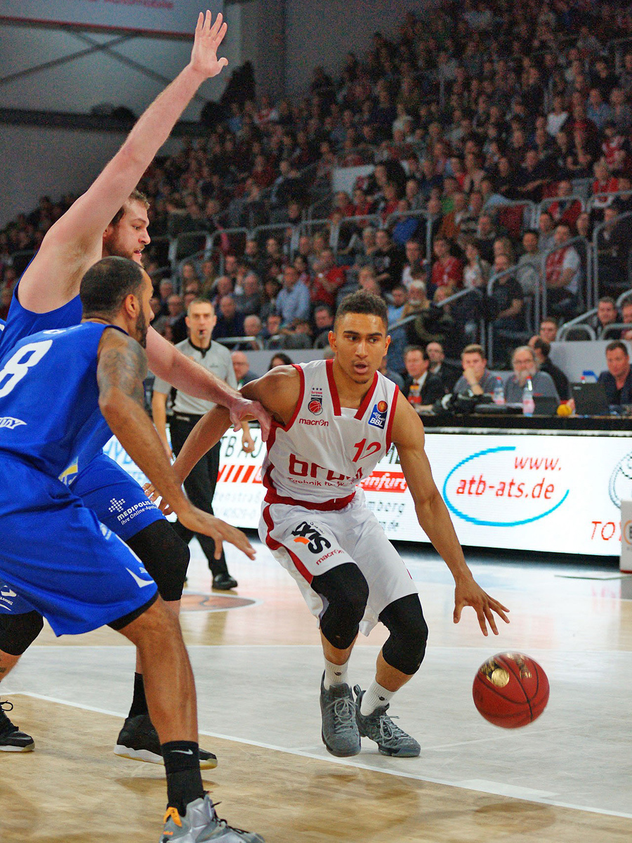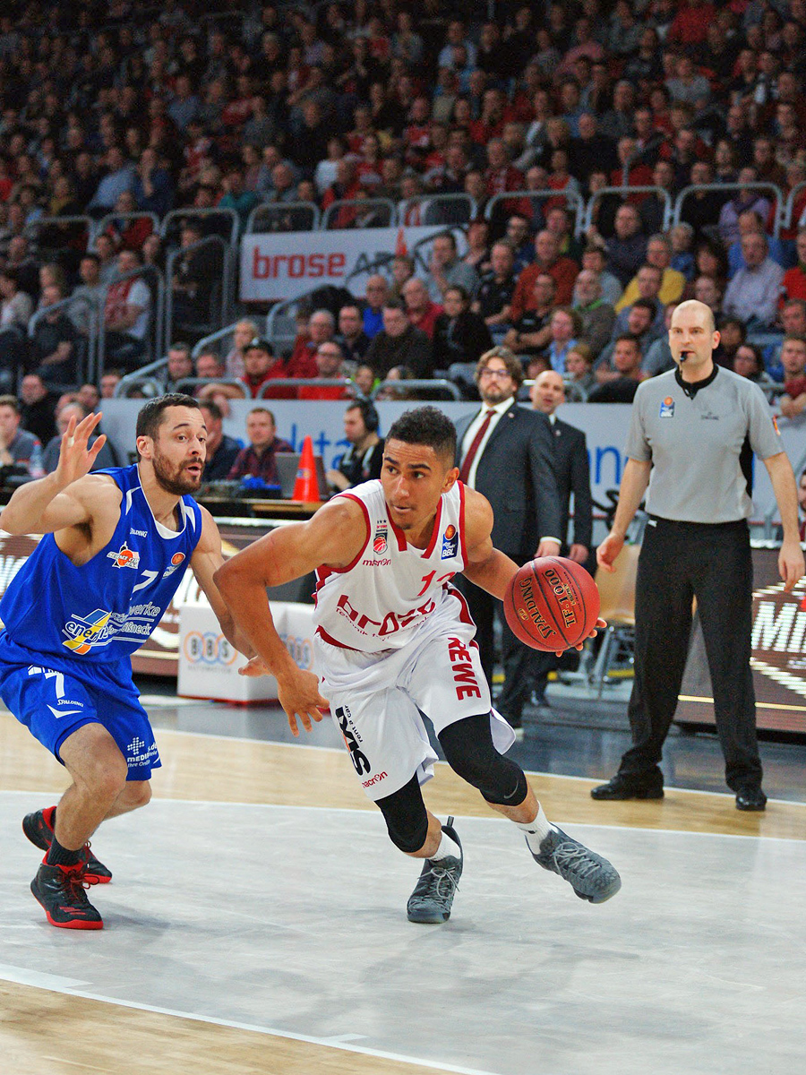 Dennoch startete die Mannschaft von Trainer Björn Harmsen gut in die Partie, was in erster Linie BBL-Topscorer Marcos Knight zu verdanken war. Der US-Amerikaner, der bereits in Baunach für Furore sorgte, legte gut los und sammelte bis zur Halbzeit bereits neun Punkte. Aber auch der Meister zeigte sich nach dem neuerlichen Nackenschlag in der Euroleague gut erholt. Bis Mitte des ersten Viertels verlief die Begegnung beinahe ausgeglichen (13:10, 6. Min.), ehe der Titelverteidiger eine Schippe drauf legte und sich Stück für Stück weiter absetzen konnte.
