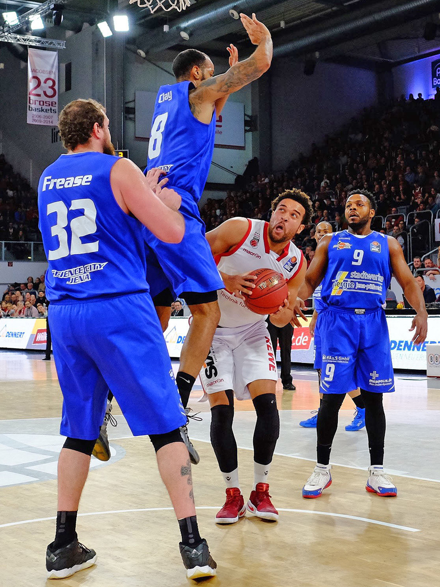 Am Ende stand für die Domstädter beim 79:54 der 13. Sieg im 13. Spiel fest, was weiterhin Tabellenplatz eins bedeutet. Dabei waren die Hausherren ihrem Kontrahenten in jeder Kategorie überlegen und nutzten insbesondere ihre körperliche Überlegenheit eiskalt aus. Jenas Neuzugang, Shaquille Goodwin, deutete mit zehn Rebounds (sechs offensiv) zwar an, dass er für Entlastung sorgen kann, doch auch der athletische US-Boy konnte nichts an Bambergs Rebounddominanz (41:32) und der klar besseren Trefferquote aus dem Zwei-Punkt-Bereich (53:31 Prozent) ändern.