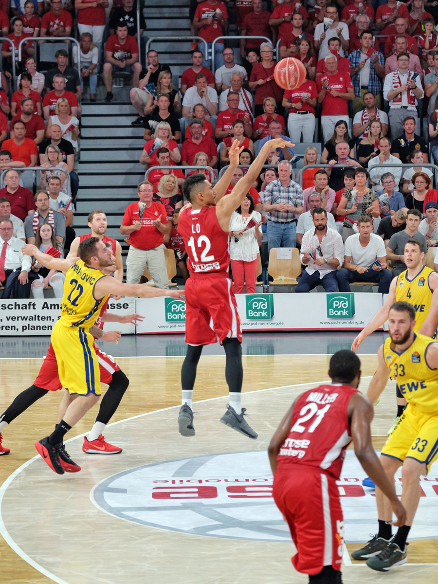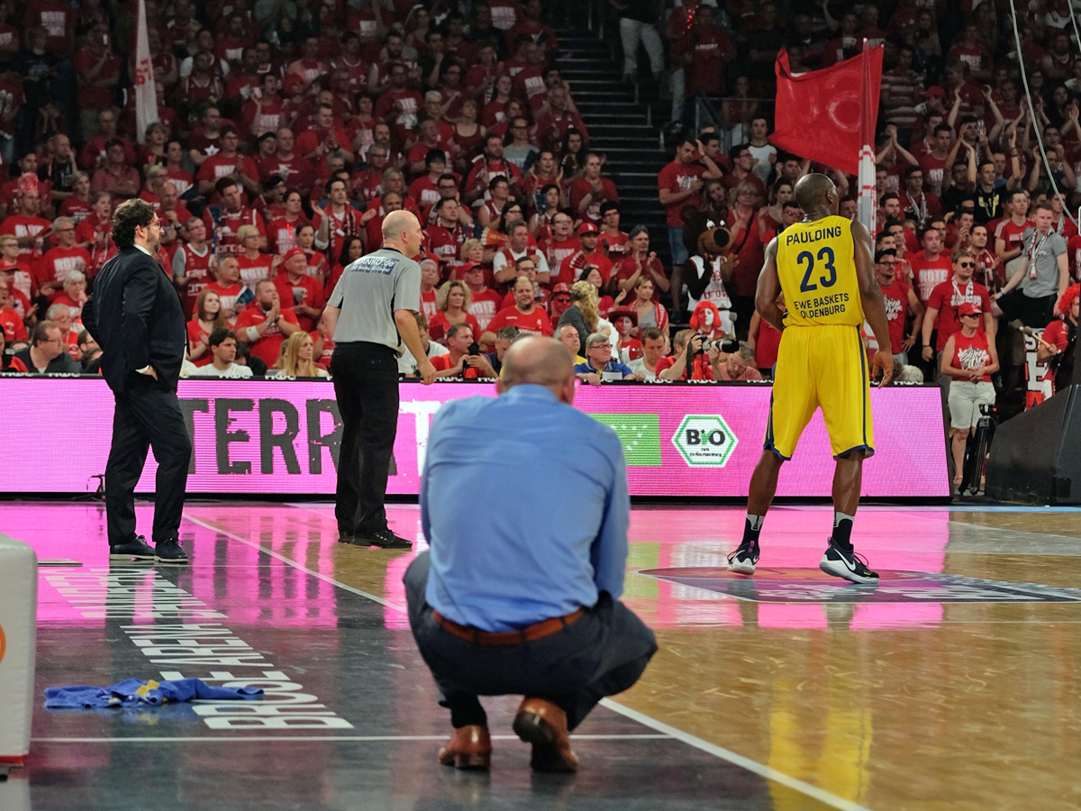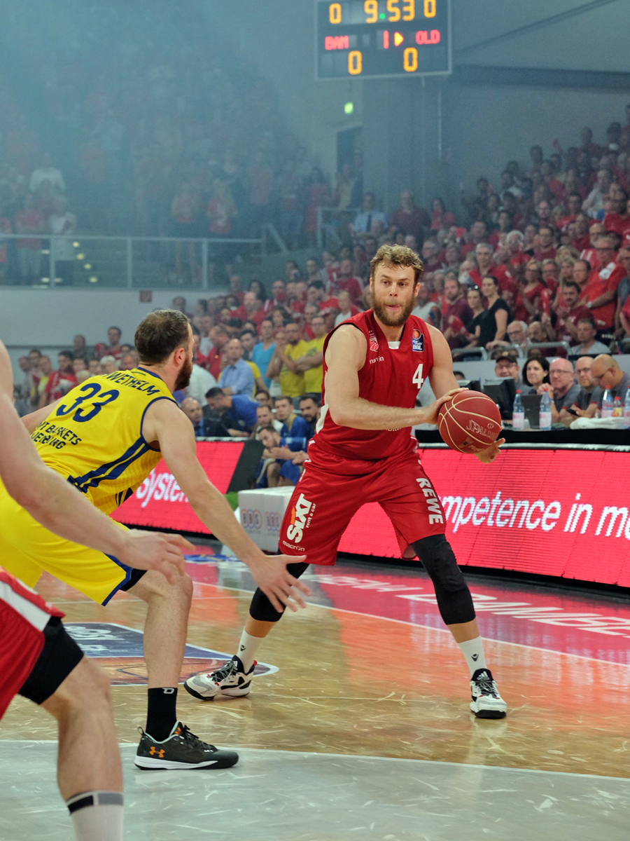 Freak City erlebte dabei jedoch vor allem eine erste Halbzeit, die typisch für sogenannte Closing-Games verlief. Während Brose Bamberg mit der 2:0-Serienführung im Rücken und der Meistertrophäe vor Augen extrem nervös agierte, versuchten die Oldenburger, die zunächst ohne ihre mitgereisten Fans auskommen mussten (Buspanne auf der Autobahn), alles in ihrer Macht stehende, um den drohenden Sweep zu verhindern.