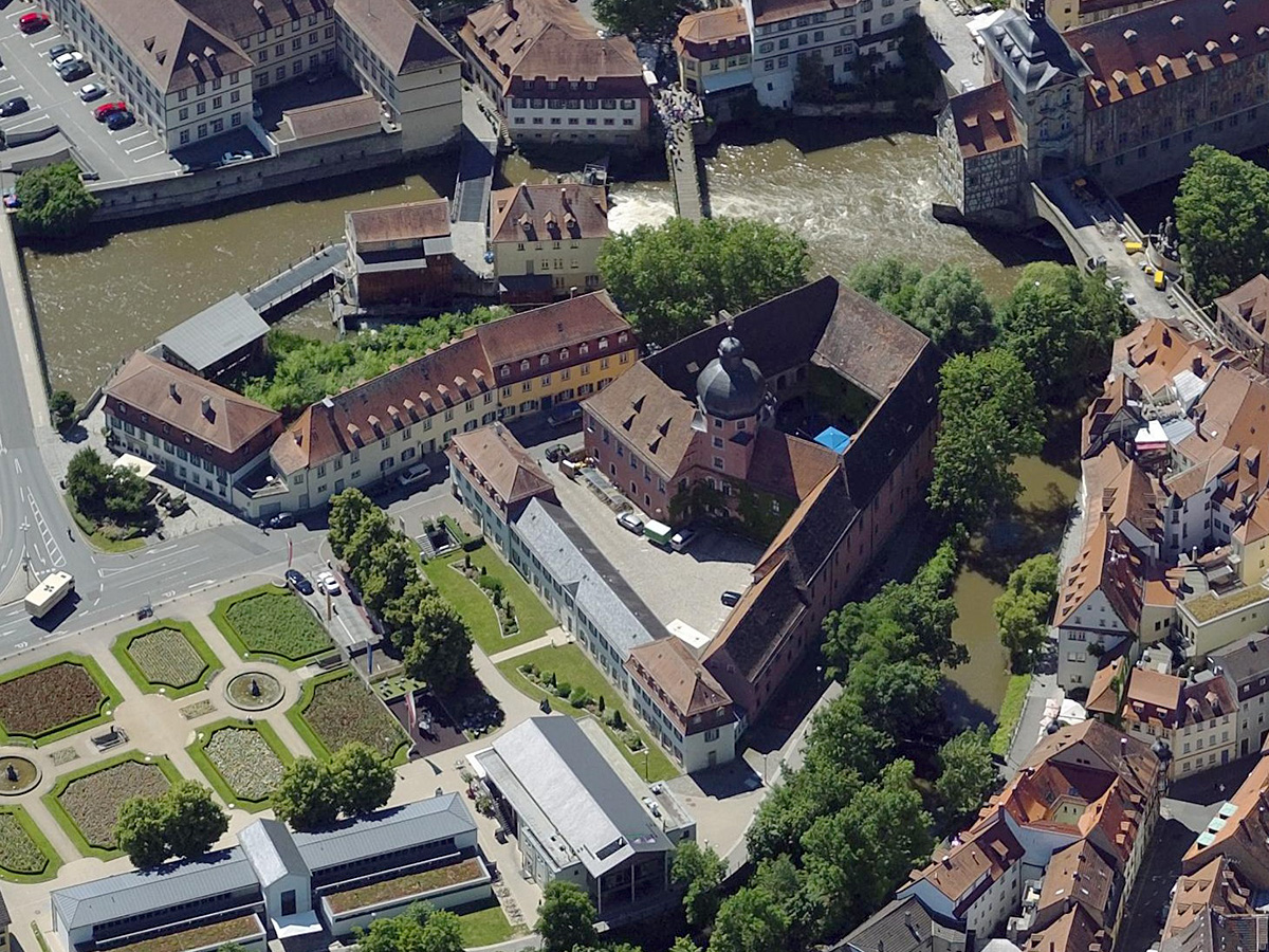 Es ist das wohl berühmteste Postkartenmotiv Bambergs: Der Blick vom Turm des Schlosses Geyerswörth auf das Berggebiet mit Altem Rathaus, Dom, Neuer Residenz und den Michaelsberg.