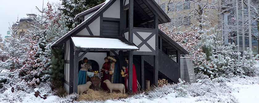 Seit nunmehr 56 Jahren schmückt die Krippe mit Figuren des berühmten Bildhauers Leitherer das weihnachtliche Bild unserer Stadt. In ihrer jetzigen Form wurde die Krippe erstmals 1963 aufgestellt. Seitdem ist sie fester und beliebter Bestandteil des Bamberger Krippenweges und genießt auch international hohes Ansehen. Bei einem Wettbewerb Europäischer Großkrippen in Aachen hat sie bereits vor Jahren unter hunderten Mitbewerbern den 2. Platz belegt. „Darauf ist das städtische Gartenamt sehr stolz. Wir freuen uns, diese Tradition pflegen und erhalten zu dürfen“, so Michael Gerencser, Abteilungsleiter Gartenwesen und Stellvertretender Amtsleiter des Gartenamtes.