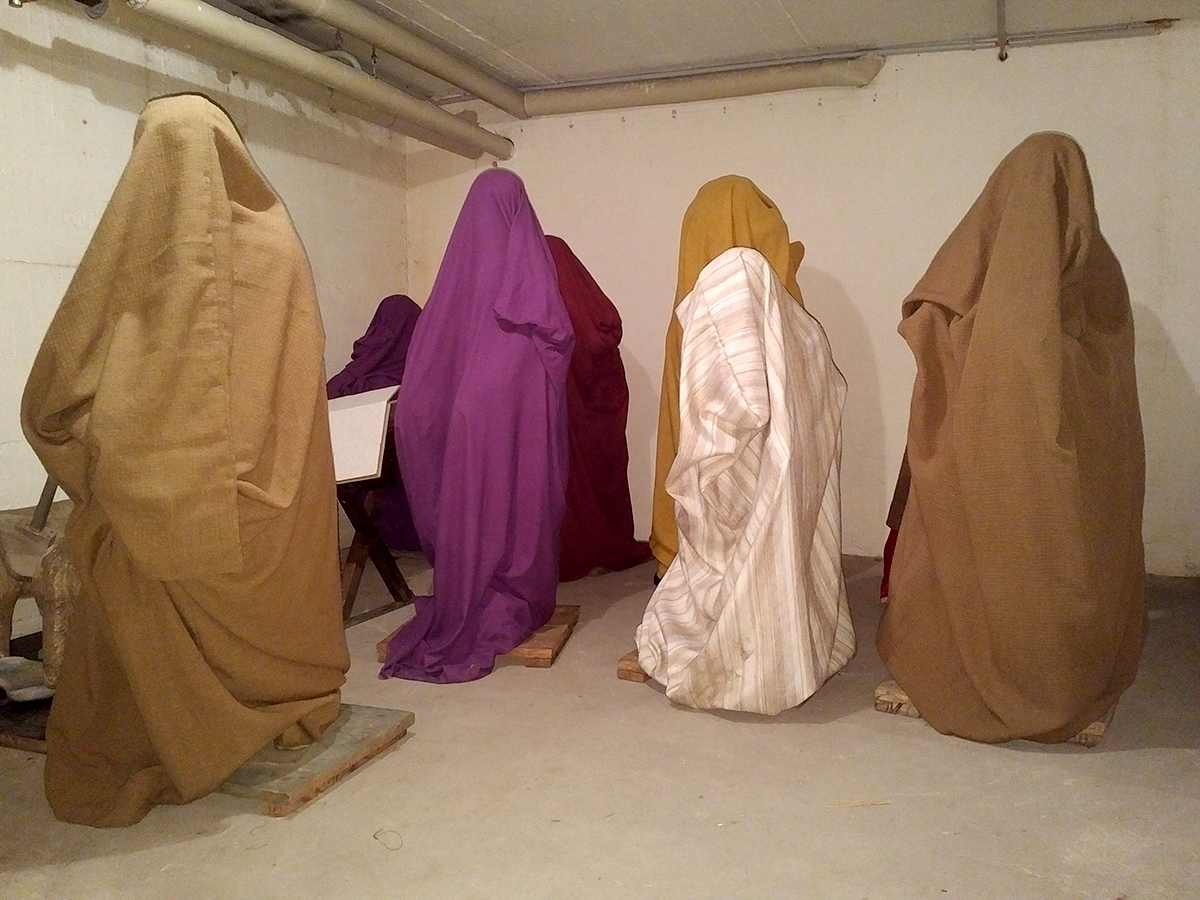 Sorgfältig gehüllt in schützende Tücher warten Maria, Josef, das Jesuskind und all die anderen Figuren noch im Keller des städtischen Gartenamtes auf ihren alljährlichen Auftritt in Bambergs bekanntester und traditionsreichster Großkrippe.