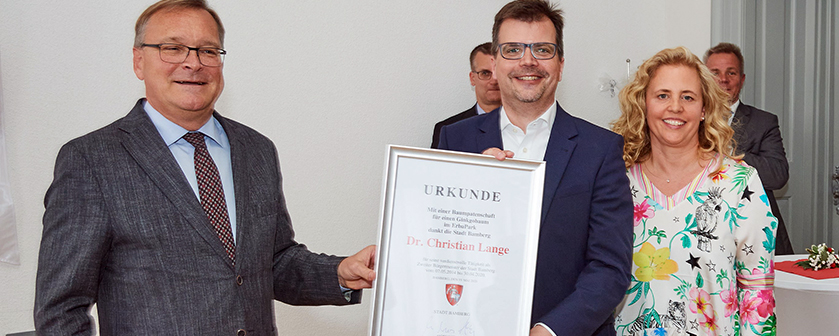 Bildunterschrift Headerbild: OB Andreas Starke mit Dr. Christian Lange und dessen Ehefrau Dr. Melanie Kuhn-Lange.