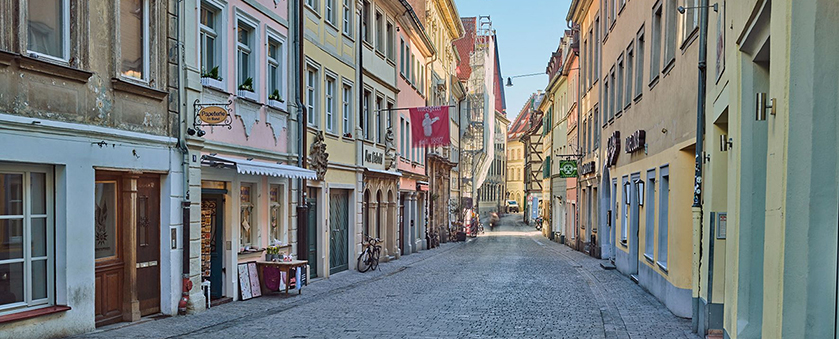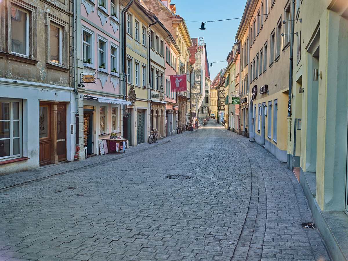 Ausstellung „Zeit gestalten“Jürgen Schraudner erzeugt mit seinen Fotografien etwas, das in seiner Heimatstadt Bamberg seit Langem in der Realität nicht mehr erlebbar ist: Leere. Die Langzeitbelichtung lässt die Menschen verschwinden, die zum Zeitpunkt der Aufnahme durch das Bild liefen. Durch ihre Bewegung werden sie unsichtbar, während der unbewegte Hintergrund bleibt – der Raum, die Architektur, die Straßen. Die Spannung der Bilder entsteht durch ihren Widerspruch zu unserer täglichen Erfahrung mit und in der Stadt. Die Fotografien sind fast alle vor der aktuellen CV19-Pandemie entstanden. Die CV-Leere der Städte und Straßen ist mittlerweile schon weltweit fest eingebrannt ins kollektive Gedächtnis wie bisher nur die autofreien Sonntage der Ölkrise 1973, die zu den bleibenden Bildererinnerungen gehören. Auf Schraudners Fotos sehen wir allerdings nur auf den ersten Blick die Leere, die Architektur, das von Menschen gemachte Bauwerk. Beim genauen Hinsehen entdecken wir aber noch Spuren der  Stadtbewohner*innen und Autofahrer*innen im Autolicht oder in ihrer durchscheinenden Anwesenheit.