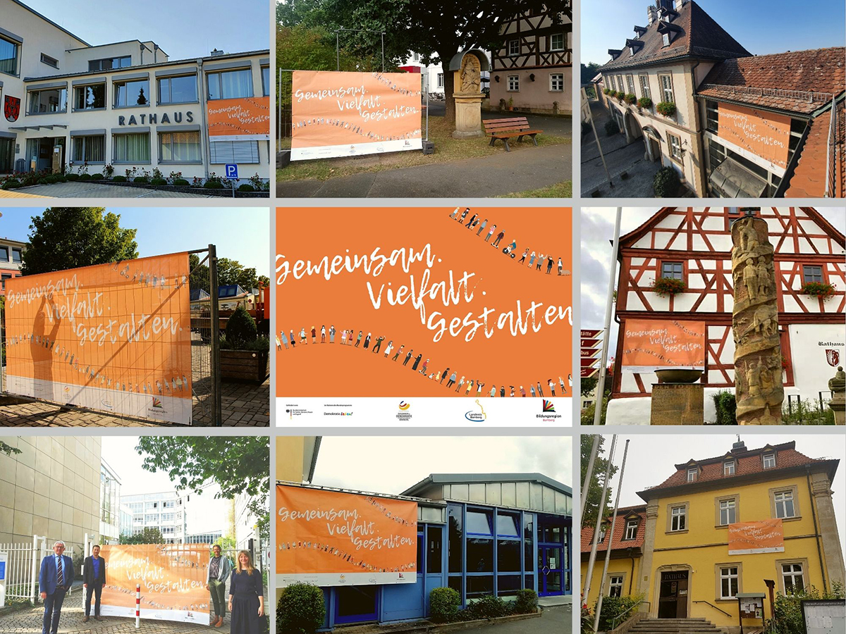 Unter dem Motto „GEMEINSAM. VIELFALT. GESTALTEN.“ organisierte der Landkreis Bamberg eine Banner-Aktion in den Gemeinden und setzte so ein Zeichen für Vielfalt und Demokratie. Hierfür wurden, finanziert über das Bundesprogramm „Demokratie leben!“, 3 mal 2 Meter große Meshbanner angefertigt, die am Rathaus oder an öffentlichen Gebäuden in den Gemeinden vor Ort aufgehängt wurden. „Uns ist auch die Nachhaltigkeit der Aktion wichtig.“, so Christian Lorenz, Leiter des Bildungsbüros. „Die Banner können immer wieder an den Rathäusern angebracht werden, um so zeitnah und öffentlichwirksam auf Ereignisse und Formen von Rassismus reagieren zu können.“