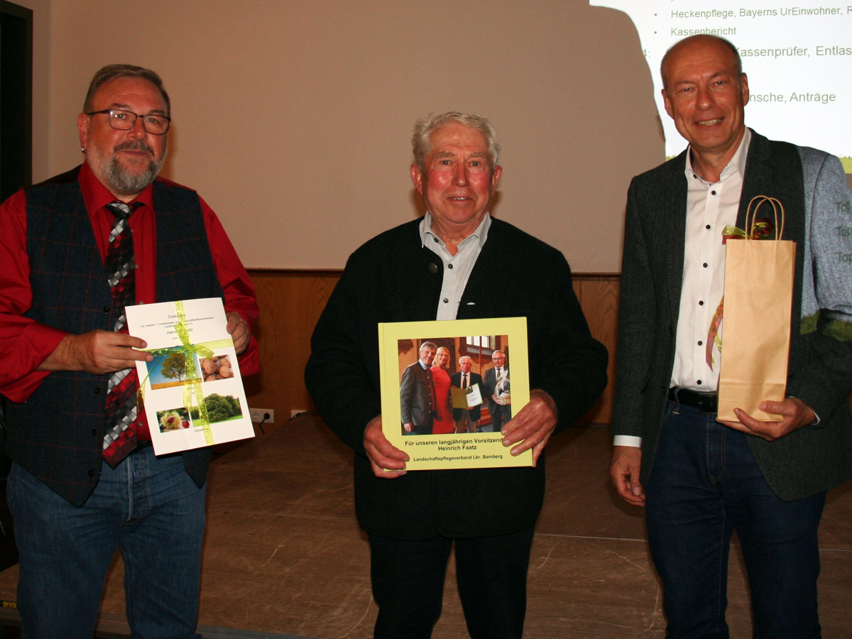 Heinrich Faatz eröffnete die Versammlung und freute sich über das zahlreiche Erscheinen der Mitglieder. „Alle gesellschaftlichen Gruppen versammeln sich in den Landschaftspflegeverbänden zum Nutzen der Natur“, betonte Faatz und bedankte sich besonders bei Landrat Johann Kalb und dem Vertreter der Stadt Bamberg, Bürgermeister Jonas Glüsenkamp, für ihr Verständnis für die Landschaftspflege und die gute Zusammenarbeit. Heinrich Faatz, ehemaliger Kreisobmann und Bürgermeister von Walsdorf, hatte als Vorsitzender den Verband über 24 Jahre geleitet und durch sein Wissen und seine Kompetenz vorangebracht. Er ist über den Landkreis hinaus bekannt als Landwirtschaftsexperte mit einem Herz für die Natur und einem offenen Ohr für andere Meinungen und Ideen.