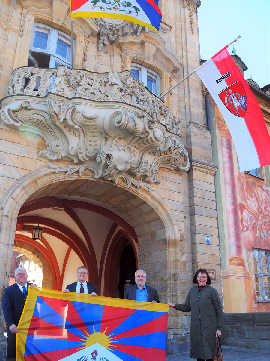 Am 10. März jährt sich der tibetische Volksaufstand von 1959, den die chinesische Besatzungsmacht blutig niederschlug. Seit 1996 setzen an diesem Tag Städte deutschlandweit ein Zeichen für die Menschenrechte, indem sie sich an der Kampagne „Flagge zeigen für Tibet“ der Tibet Initiative Deutschland beteiligen. In Bamberg weht die tibetische Flagge seit 1999 jedes Jahr am 10. März. Von 2015 bis 2016 war Oberbürgermeister Andreas Starke Schirmherr der Flaggenkampagne.