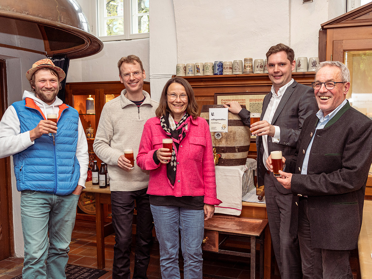„Ich freue mich über diese tolle Kooperation. Nach Wein, Apfelsecco, Likören und Edelbränden komplettiert das Bier nun das Angebot des Stiftladens und verbreitert die Palette an fair gehandelten, lokalen Produkten“, erklärt Bürgermeister Jonas Glüsenkamp bei der Verkostung. Zu dieser waren viele weitere Gäste ins Fränkische Brauereimuseum gekommen. Die Bierkenner waren sich nach dem ersten Schluck einig: Das Stiftsgartenbier schmeckt kellerfrisch, süffig und vollmundig. Gebraut ist es nach einem historischen Originalrezept aus der ehemaligen Brauerei Michaelsberg, der ältesten Braustätte Bambergs. Den Stiftungsreferenten Bertram Felix erfreut das besonders, denn „bei der nachhaltigen Reaktivierung der Klosteranlage wollen wir als Stiftung unbedingt an die Historie anknüpfen, und dazu gehört ja auch ganz entscheidend die Brautradition auf dem Michaelsberg.“
