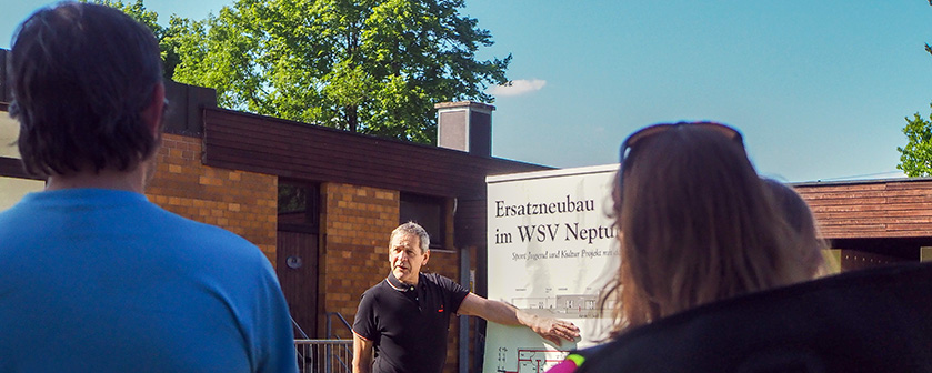 Bildunterschrift Headerbild: Über die Pläne des WSV Neptun informiert der Vorsitzende Horst Schubert.