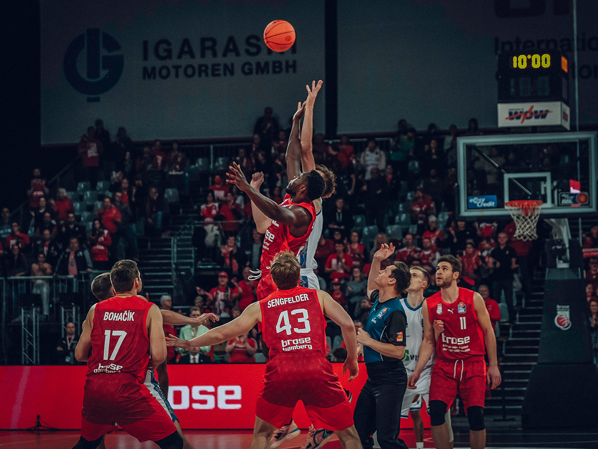 Die Anfangsphase war auf Augenhöhe. Frankfurt traf zunächst drei Dreier, Brose punktete durchs Kollektiv: Wohlrath, Young, Miller und Sengfelder waren in den ersten Minuten die Bamberger Scorer (10:9, 4.). Mitte des Viertels traf Patrick Heckmann den Distanzwurf, kurz darauf Kevin Wohlrath den nächsten. Da aber auch die Gäste immer wieder den freien Mann fanden, blieb es eine ausgeglichene Partie (20:20, 8.). Zwei Heckmann-Freiwürfe, einer von Chachashvili und ein Korbleger des Israeli sorgten zum Ende der ersten zehn Minuten allerdings für eine kleine Bamberger Führung: 25:21.