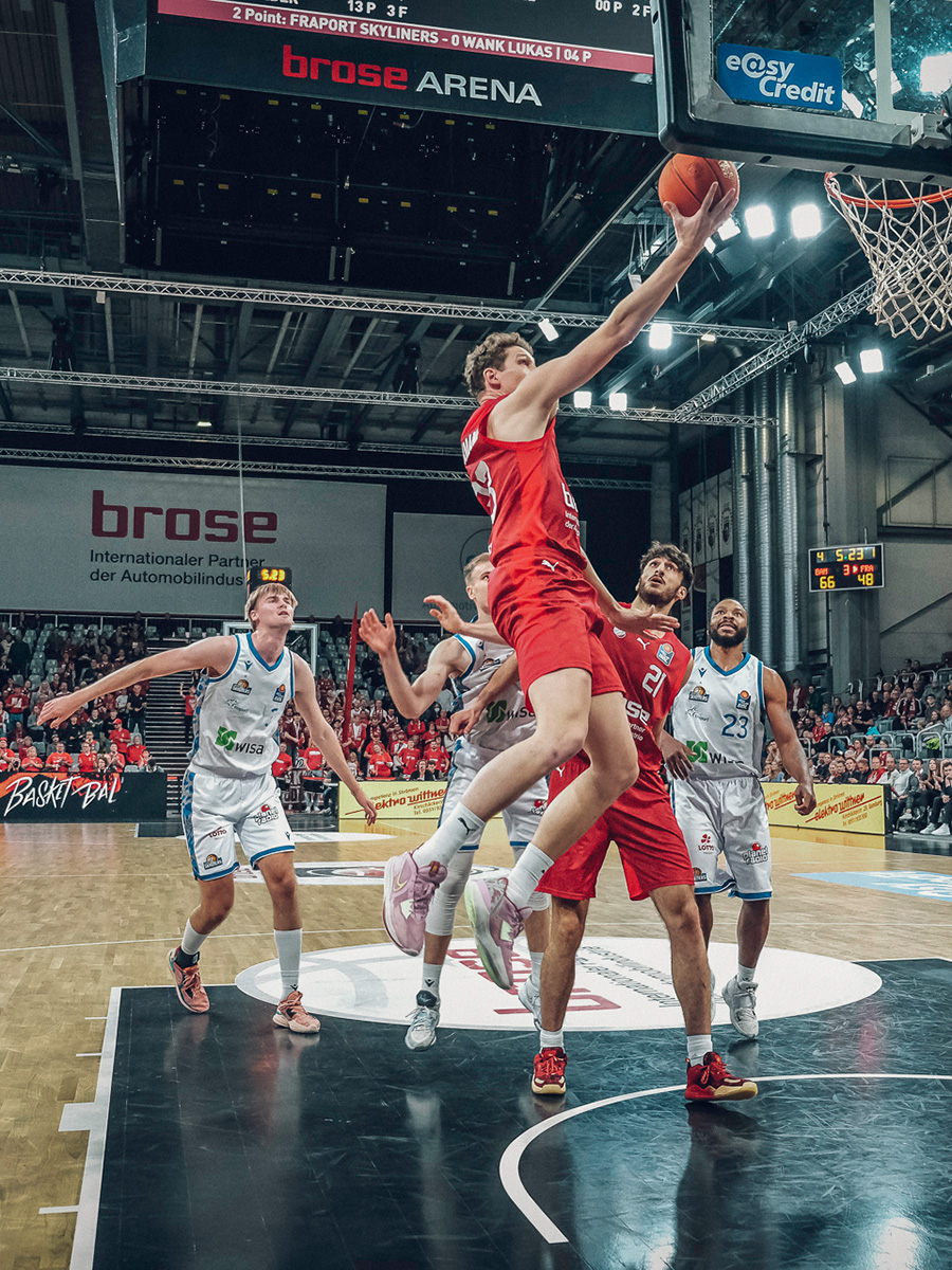 Mit Beginn der zweiten Hälfte merkte man den Frankfurtern an, dass sie nicht gewillt waren, sich aus der Halle schießen zu lassen. Fortan waren sie bissiger beim Rebound, erspielten sich einige zweite Chancen, die sie nutzten. Brose allerdings hielt gut dagegen, war vor allem weiterhin treffsicher und lag Mitte des dritten Viertels nach wie vor mit über 20 Punkten in Front (72:50, 26.). Für die Gäste kam Lukas Wank nun immer besser ins Spiel. Der Nationalspieler war es auch, der durch fünf Punkte in Folge seine Mannschaft wieder auf 15 Zähler ran brachte (75:60, 29.). Dieser Bamberger Vorsprung hatte beim 78:63 auch vor dem Schlussabschnitt noch Bestand.