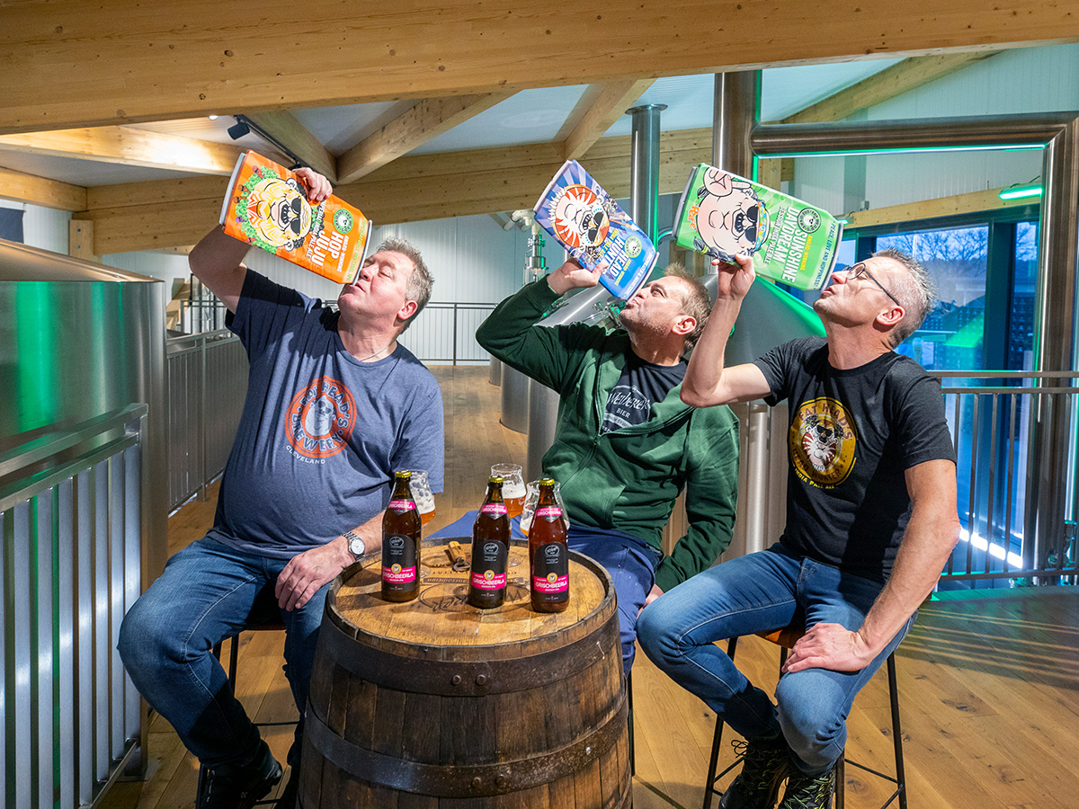 Große Freude beim Brauen und Verkosten des dritten gemeinsamen Bieres hatten: (v.l.) Roland Kundmüller, Matt Cole und Oswald Kundmüller.