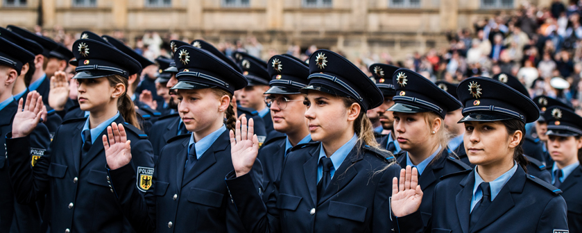 Die Dienstanfängerinnen und -anfänger schworen unter der Teilnahme zahlreicher Ehrengäste „das Grundgesetz und alle in der Bundesrepublik geltenden Gesetze zu wahren und ihre Amtspflichten gewissenhaft zu erfüllen“. Umrahmt wurde die Vereidigung durch einen ökumenischen Gottesdienst, welcher im Dom St. Peter und St. Georg stattfand.
