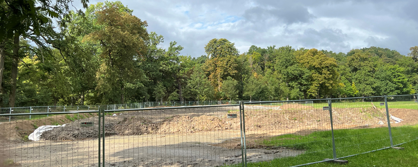 Bildunterschrift: Das südliche Ende der Schillerwiese wurde als Zwischenlager für das Aushubmaterial aus dem Hainweiher genutzt.