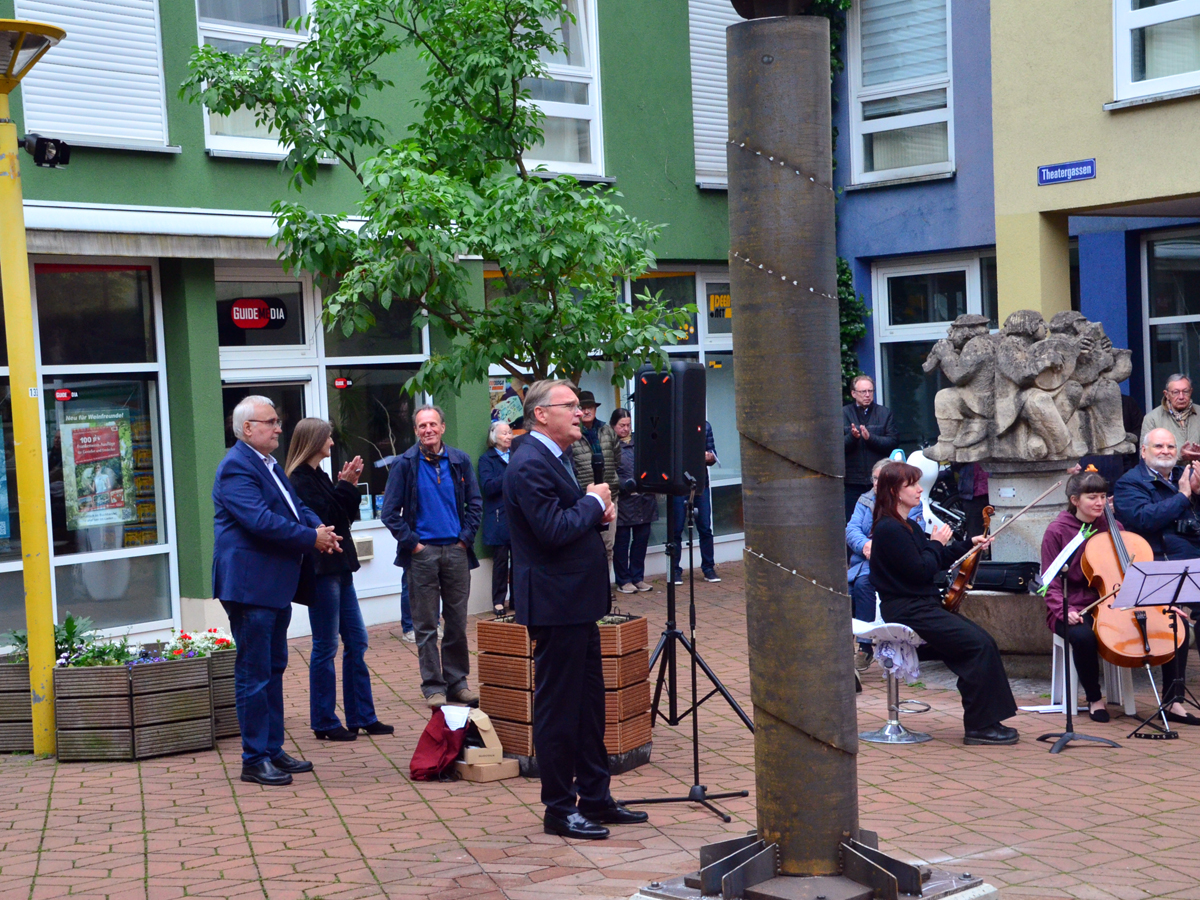 Oberbürgermeister Andreas Starke lobte das Projekt als „Zeichen der Wertschätzung und Anerkennung“ und dankte den Sponsoren sowie den Grundstückseigentümern in den Theatergassen für ihre Unterstützung.