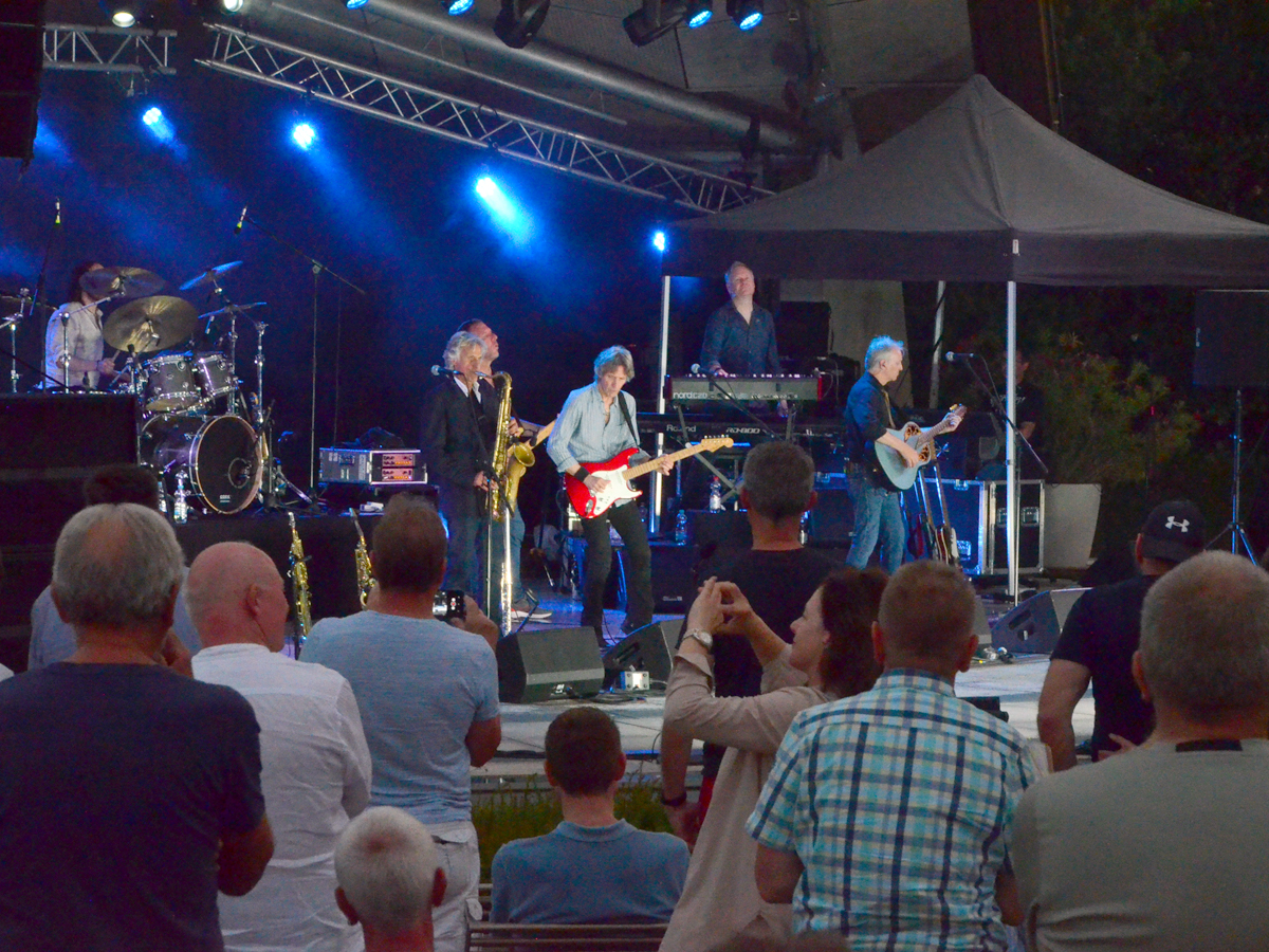 Trotz der schwülen Hitze zeigten die Musiker pure Spielfreude und eine bemerkenswerte Energie. Besonders Chris White, der neben dem Saxophon auch Flöte und Oboe spielte, verlieh dem Auftritt eine besondere Note. Seine stilgetreue Erscheinung im Anzug und mit Krawatte, selbst bei diesen Temperaturen, unterstrich die Hingabe zur Musik und zur authentischen Präsentation.