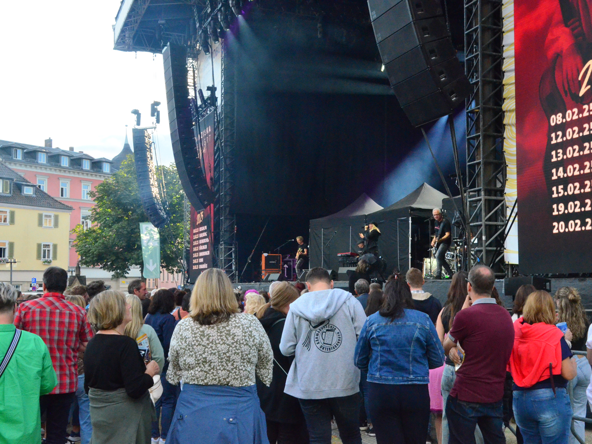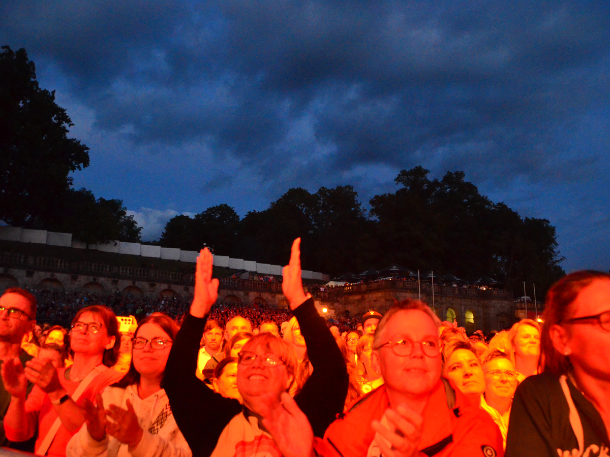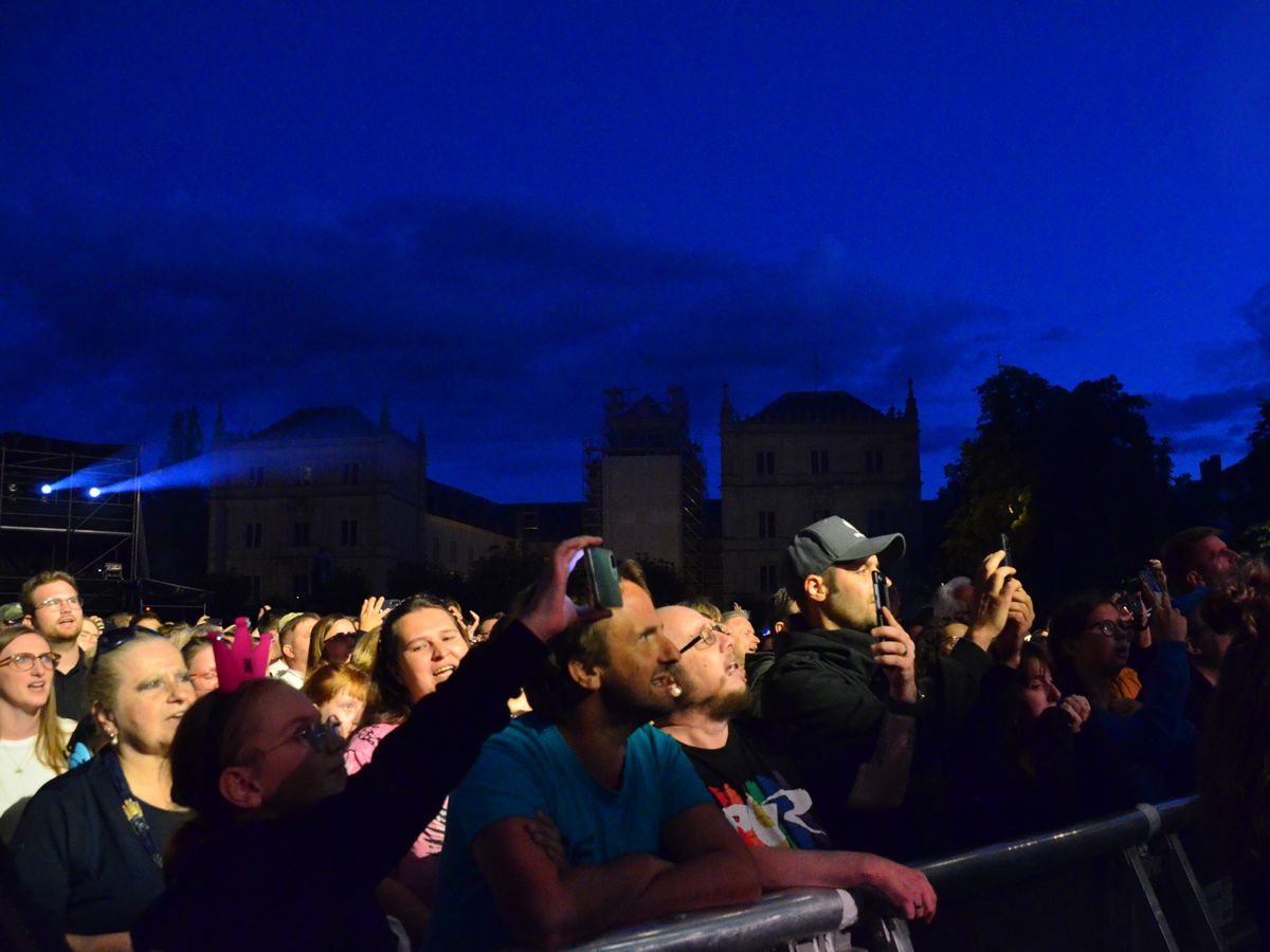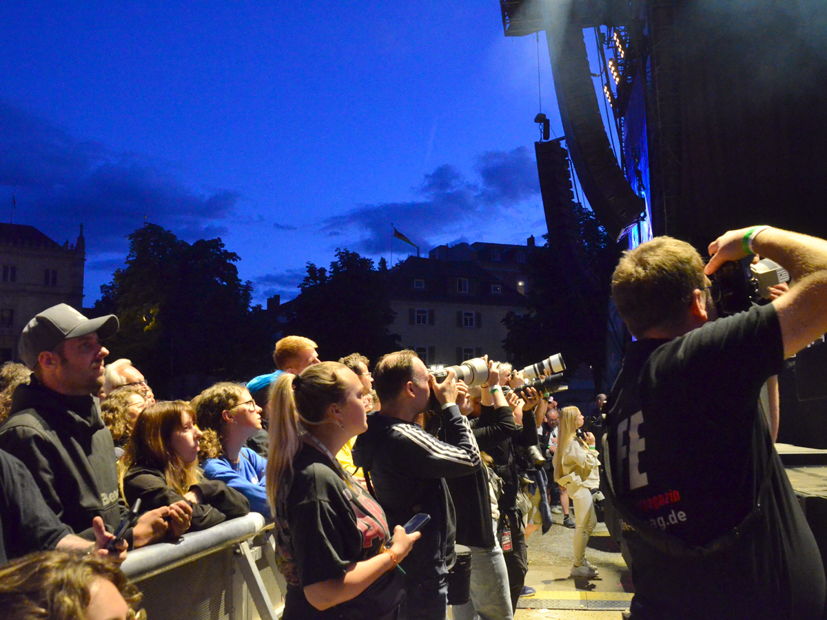 Bereits vor dem Auftritt füllte sich der Schlossplatz mit Fans, die sich auf eine Nacht voller Musik und Emotionen freuten. Die Vorfreude war förmlich greifbar, als die ersten Klänge der Vorband erklangen. Besonderer Dank gilt dabei auch dem Support von Franziska Kleinert, die für eine fantastische Stimmung sorgte, sowie der A Cappella Pop Comedy Sensation Füenf, die das Publikum mit ihrem einzigartigen Humor und ihrem beeindruckenden Gesangstalent perfekt auf den Abend einstimmte.