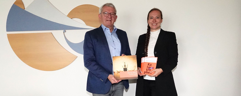 Bildunterschrift: „Was tun, wenn…?“ – Landrat Johann Kalb und Tamara Moll, Leiterin des Fachbereichs Klimaschutz am Landratsamt Bamberg zum Start der Informationskampagne zur Eigenvorsorge der Bevölkerung