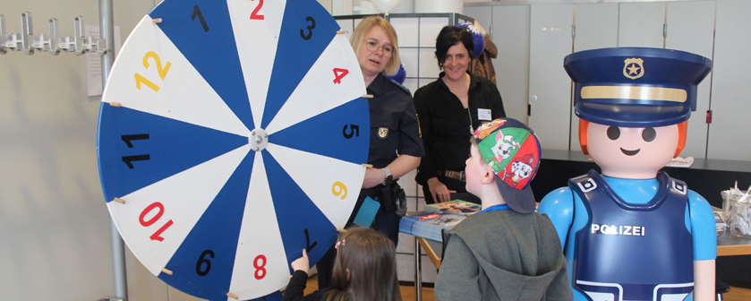 Neben einem abwechslungsreichen Spieleprogramm mit dem Spielmobil, einem Glücksrad und vielen weiteren Highlights gibt es eine Stempelrallye mit einer Waffel als Preis. Feuerwehr und Polizei sind mit Fahrzeugen und uniformierten Beamten vor Ort, um den Kindern spielerisch den Umgang mit Sicherheitskräften näherzubringen und eventuelle Berührungsängste abzubauen. Auch einen Rettungswagen kann man wieder erkunden.