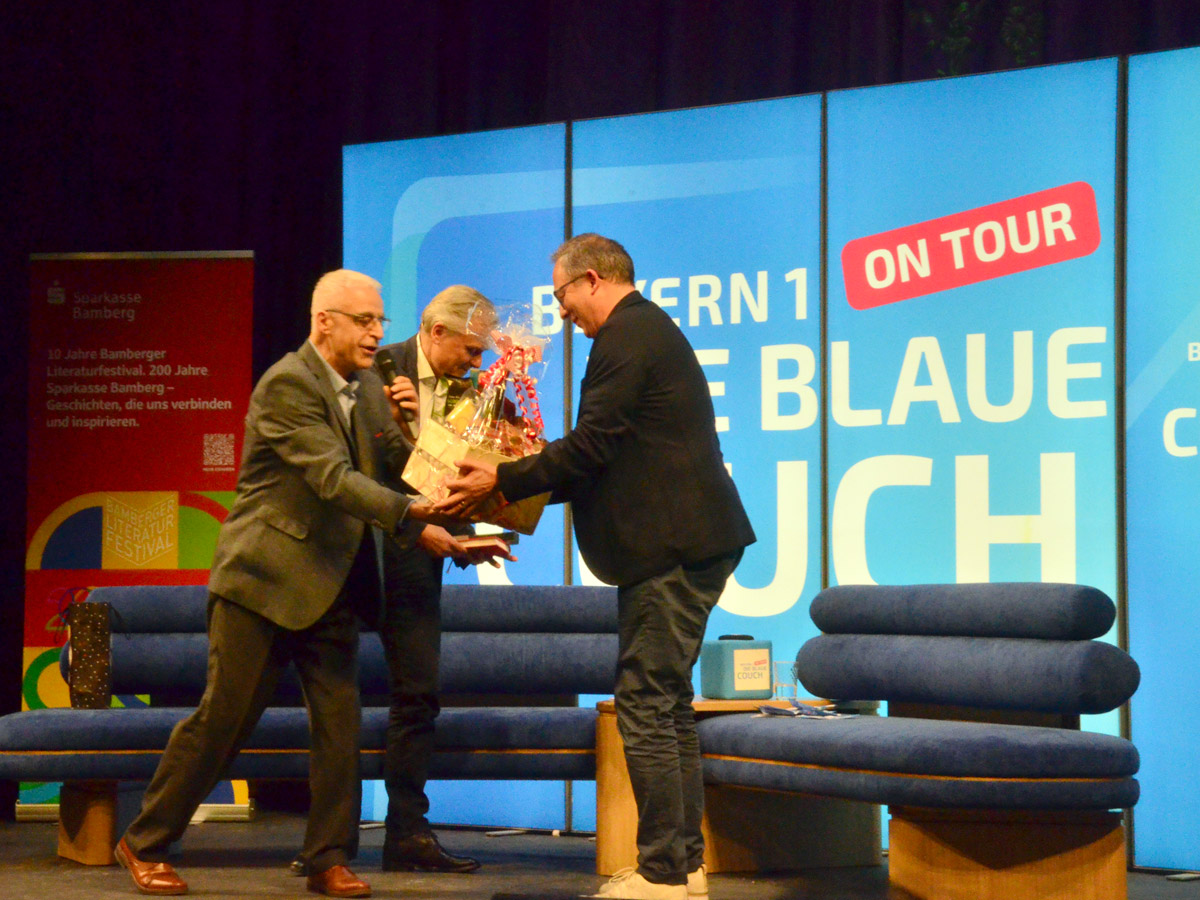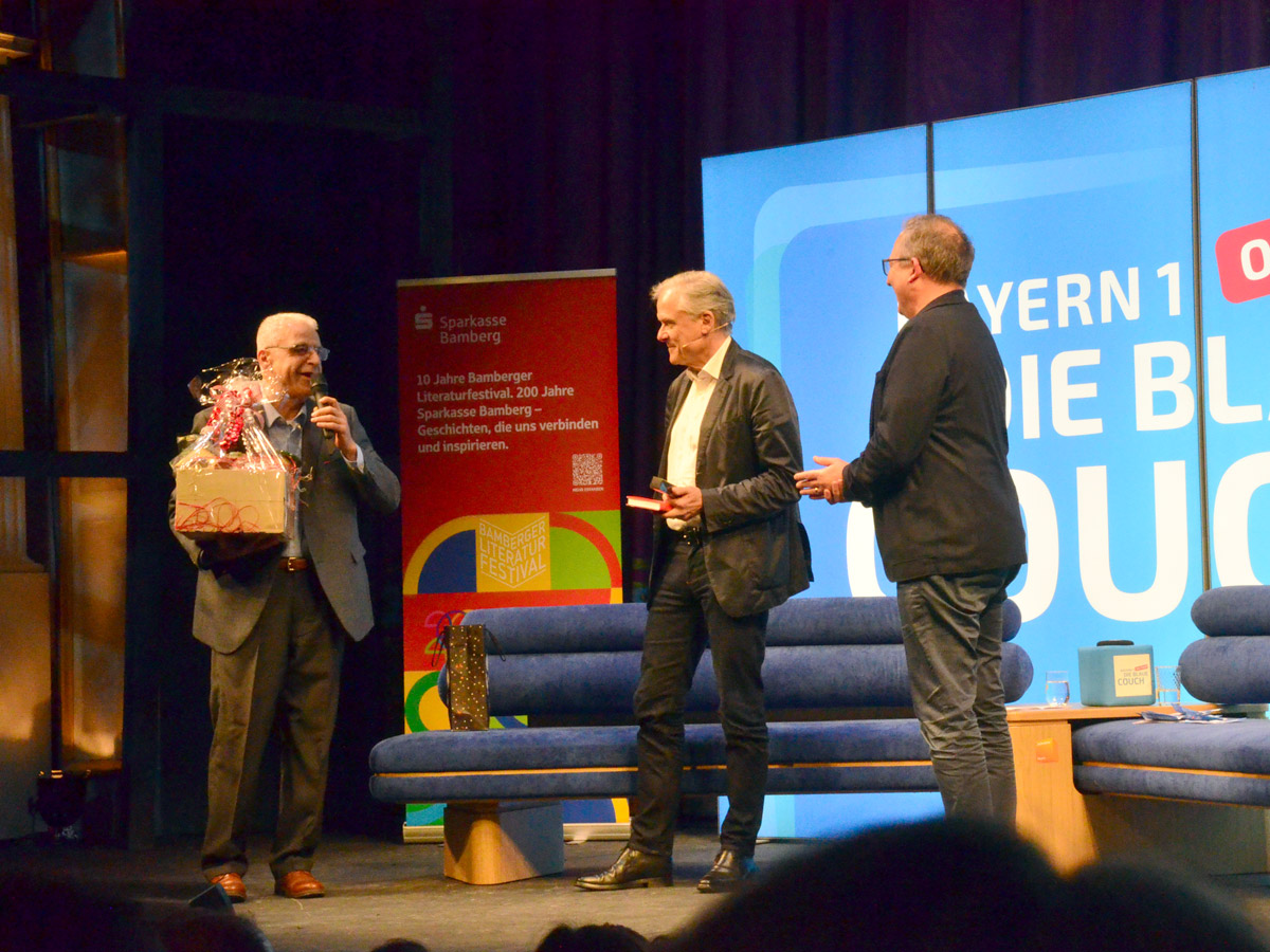 Ein ausverkauftes E.T.A.-Hoffmann-Theater, zwei brillante Köpfe und ein Abend voller Humor und Tiefgang – das war „Die Blaue Couch“ von Bayern 1 beim Bamberger Literaturfestival (Bamlit).