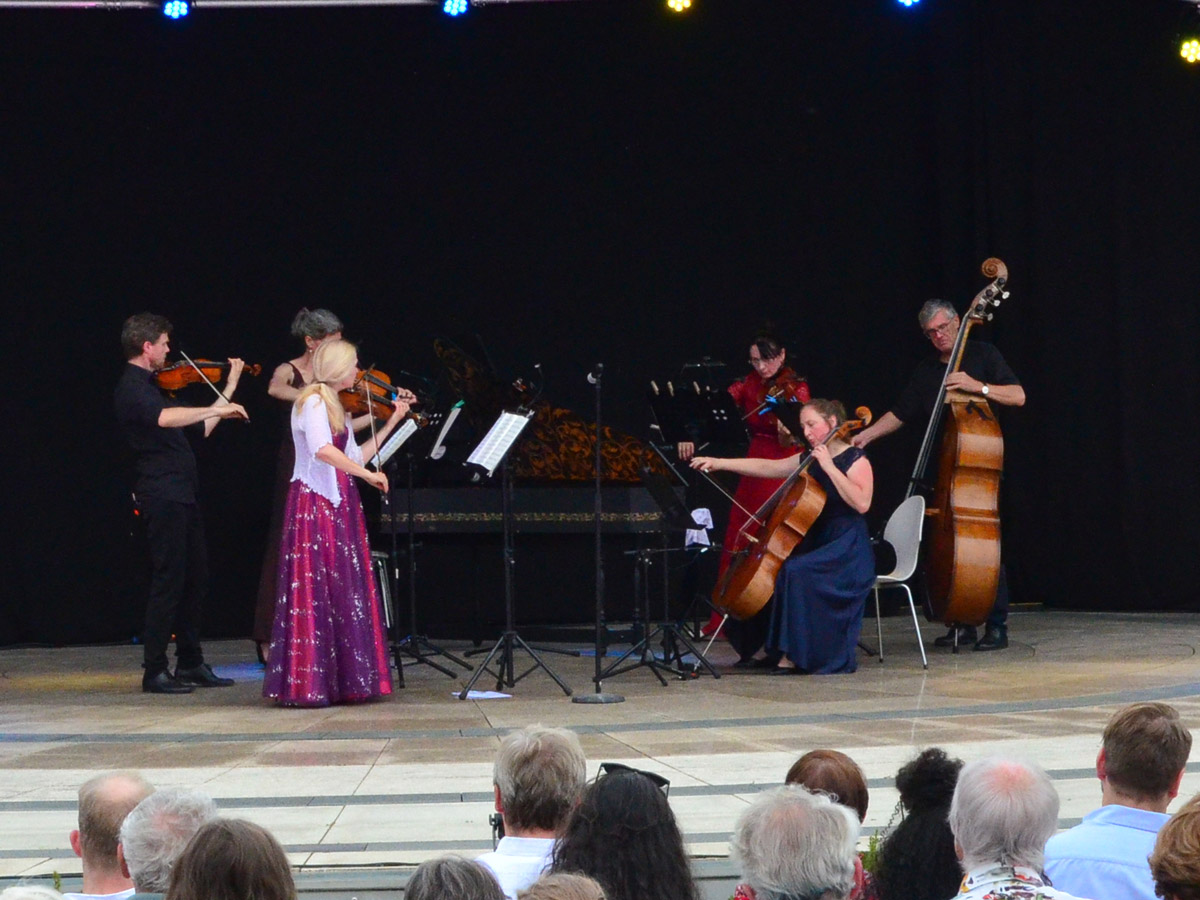 Anders als bei vielen anderen Veranstaltungen herrschte eine stille, beinahe andächtige Atmosphäre im Park. Das Publikum lauschte aufmerksam den filigranen Klängen der Streicher, die mit viel Gefühl und technischer Brillanz durch Frühling, Sommer, Herbst und Winter führten. Der natürliche Klangraum der Seebühne trug dazu bei, dass sich die Musik auf ganz besondere Weise entfalten konnte.
