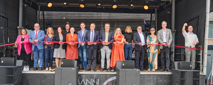 Am Samstag um 13.58 Uhr war es so weit: Unter dem Applaus zahlreicher Gäste durchschnitten Oberbürgermeister Andreas Starke, Regierungspräsident Florian Luderschmid und zahlreiche Vertreterinnen und Vertreter aus Politik, Verwaltung und Zivilgesellschaft symbolisch ein rotes Band.