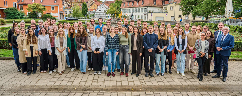 Bildunterschrift Header: Bambergs Bürgermeister Jonas Glüsenkamp (2.v.r.) mit Landrat Johann Kalb (r.) und 45 neuen Lehramtsanwärterinnen und -anwärtern