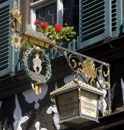 Nach diesem kleinen Abstecher wollen wir uns wieder dem Rauchbier zuwenden, das in Bamberg von zwei Brauereien hergestellt wird. Es sind dies die Brauerei „Spezial“ in der Oberen Königstraße und die Brauerei „Schlenkerla“, vor deren Gaststätte wir hier stehen. Die Braustätte selbst befindet sich am Stephansberg, von dem wir ja schon gesprochen haben.